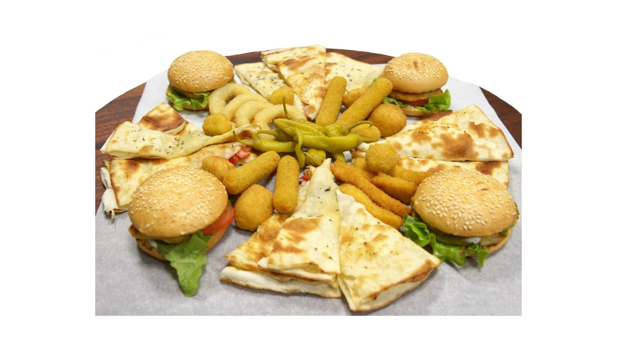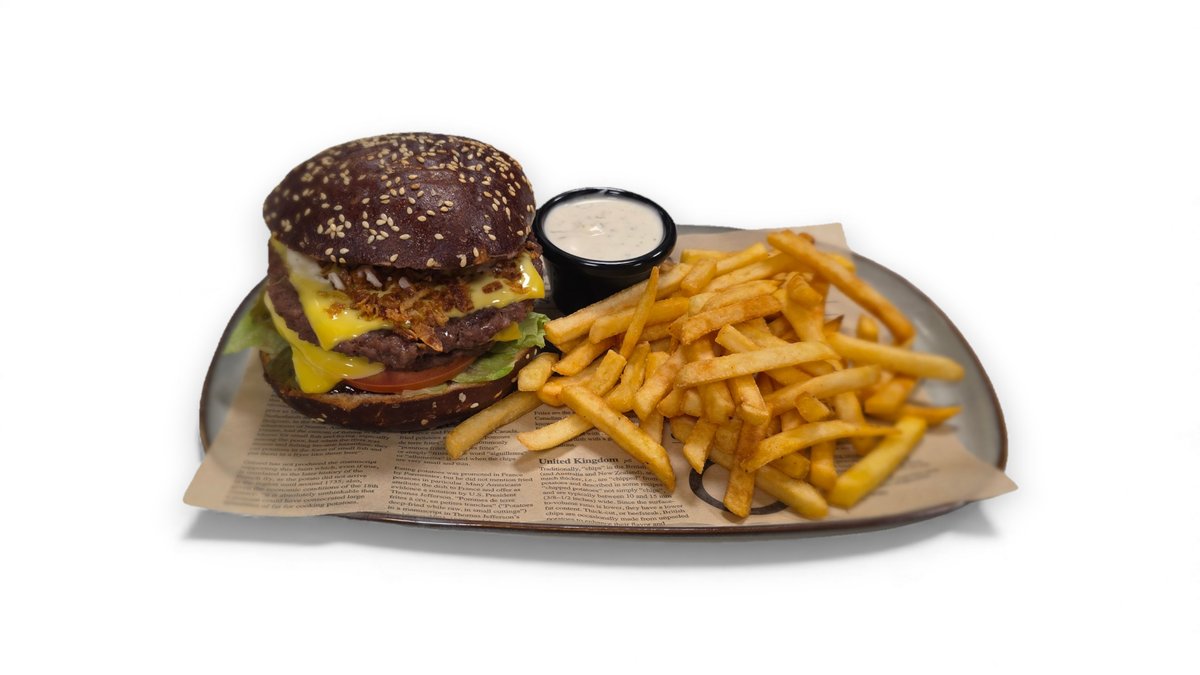 Pomidorų padažas, mocarela sūris, jautienos faršas, paprika marinuota, jalapeno pipirai, svogūnas raudonas pjaustytas, čili pipirai, "bernaise" padažas, česnakinis bazilikų aliejus