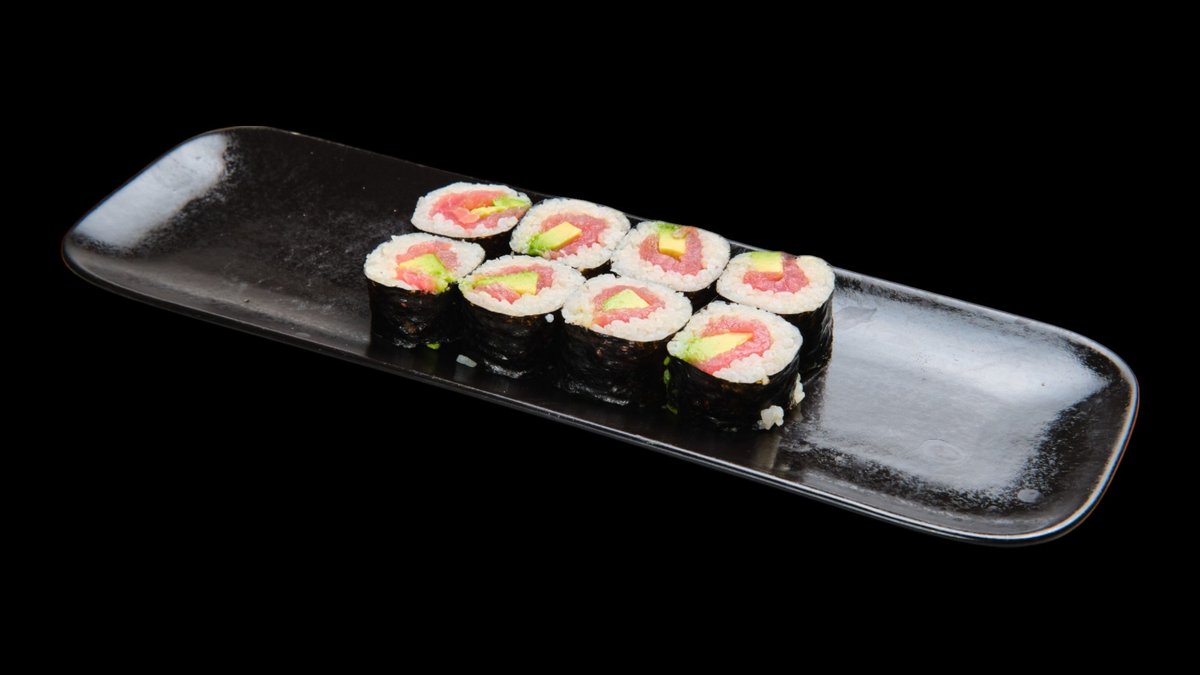 Tunas, tepamas sūris, agurkas, avokadas, massago ikrai, teryaki