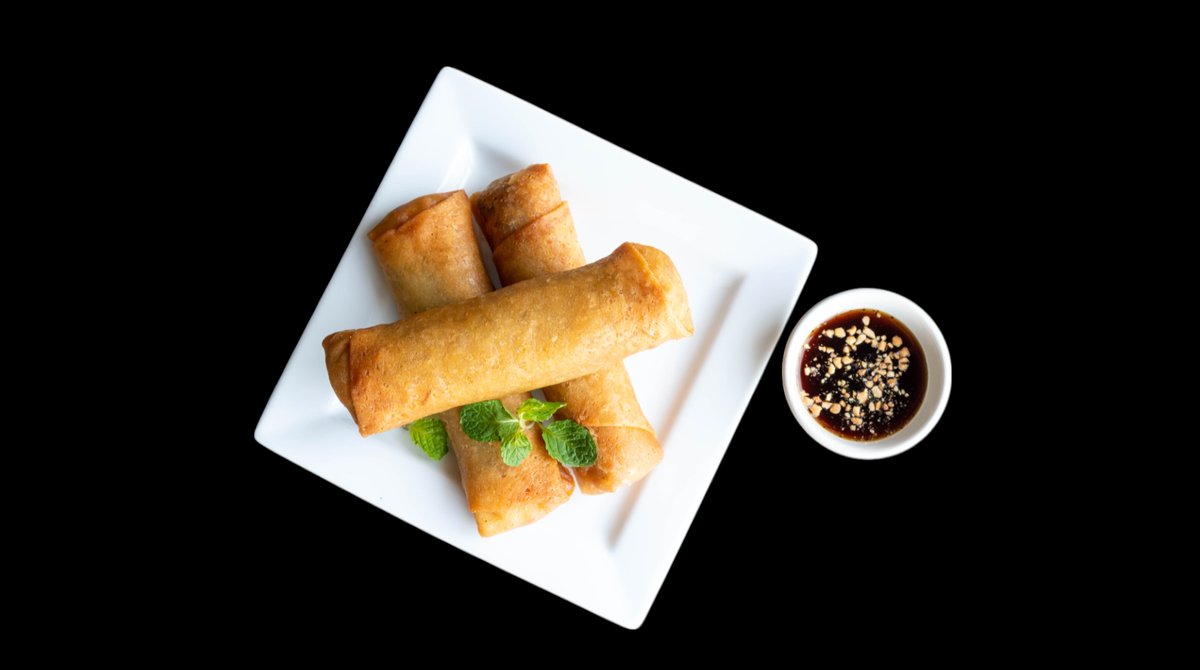 Keptos krevetės tempuroje, krabų lazdelės, tepamas sūris, agurkas, sezamas, massago ikrai, karai padažas, svogūnų laiškai.