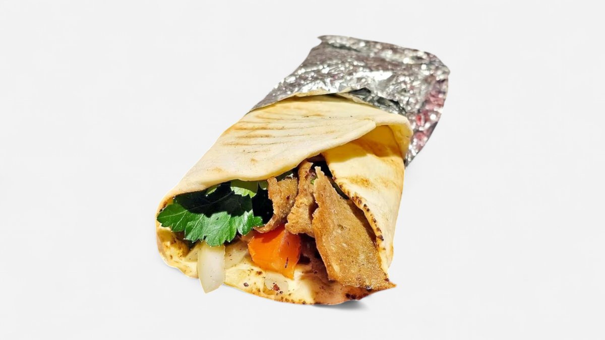 Didelis kebabas lavaše . Iceberg salotos, svogūnai , petražolės , pomidorai, bulvytės , kebabo mėsa (150 g jautienos) ir padažas. Salotų, kurias dedame į kebabą pasirinkti negalima.