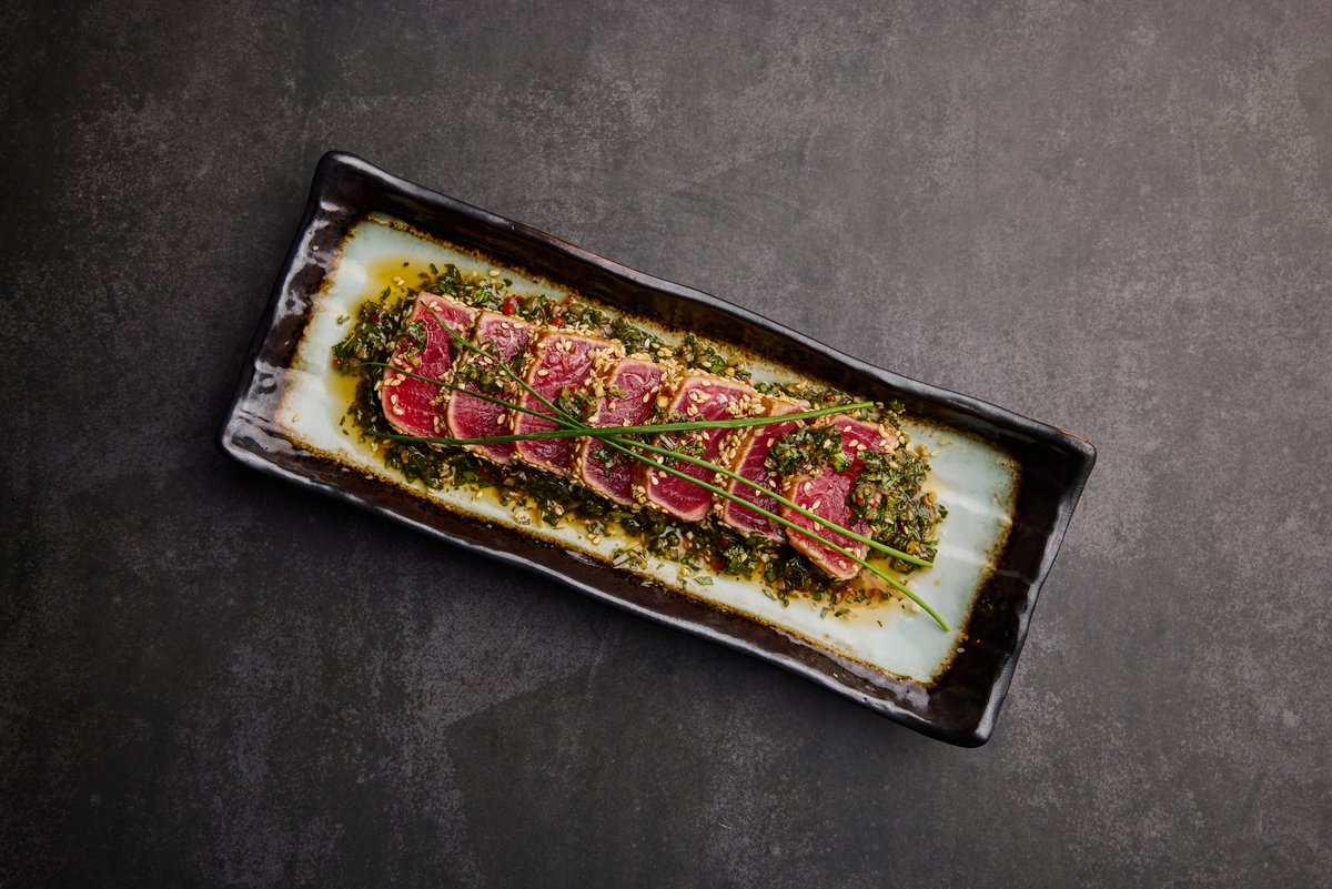 Deginta tuno file, patiekiama su čimičiuri ir ponzu padažu