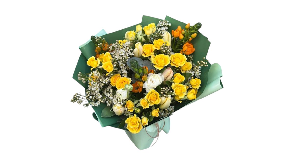 Įvairių gėlių puokštė „Saulės šiluma”