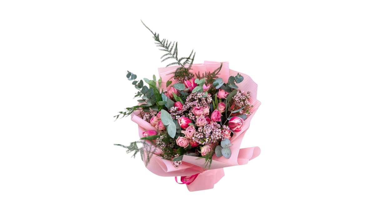 Įvairių gėlių puokštė „Rožinė svajonė”