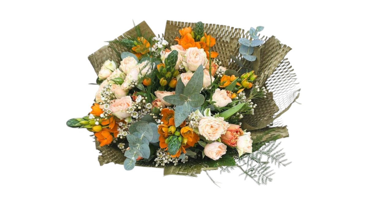 Įvairių gėlių puokštė „Oranžinė harmonija”