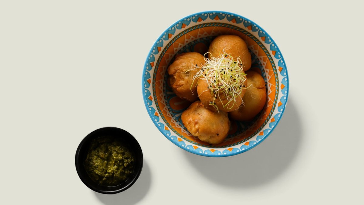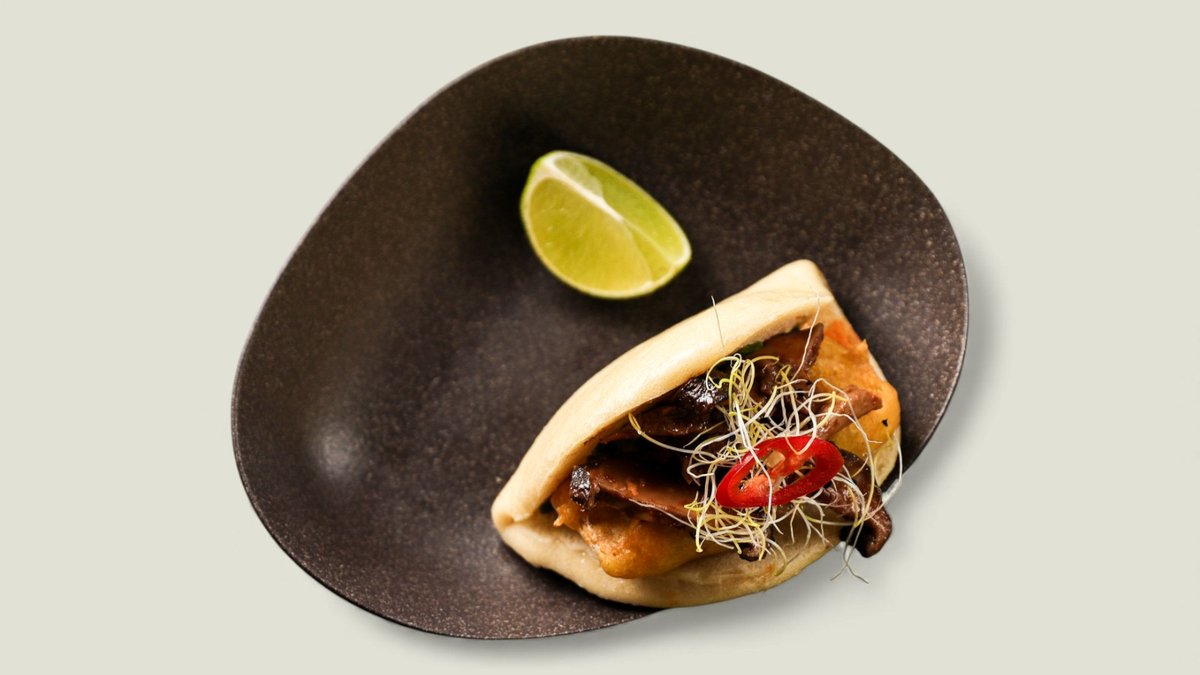 5 vnt. gruzdintų mini bao su grybais, miso majonezas