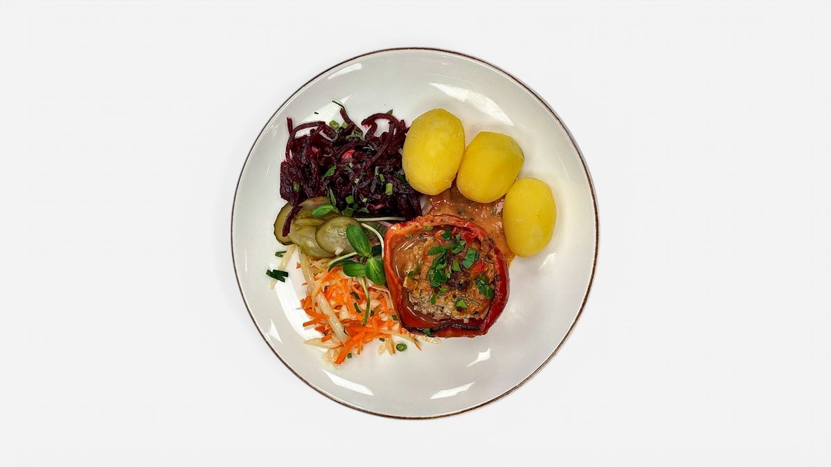 Salotų mix, burokėlių lapai, lęšiai, žalios sojos pupelės, lašiša, agurkai, morkos, salotų padažas