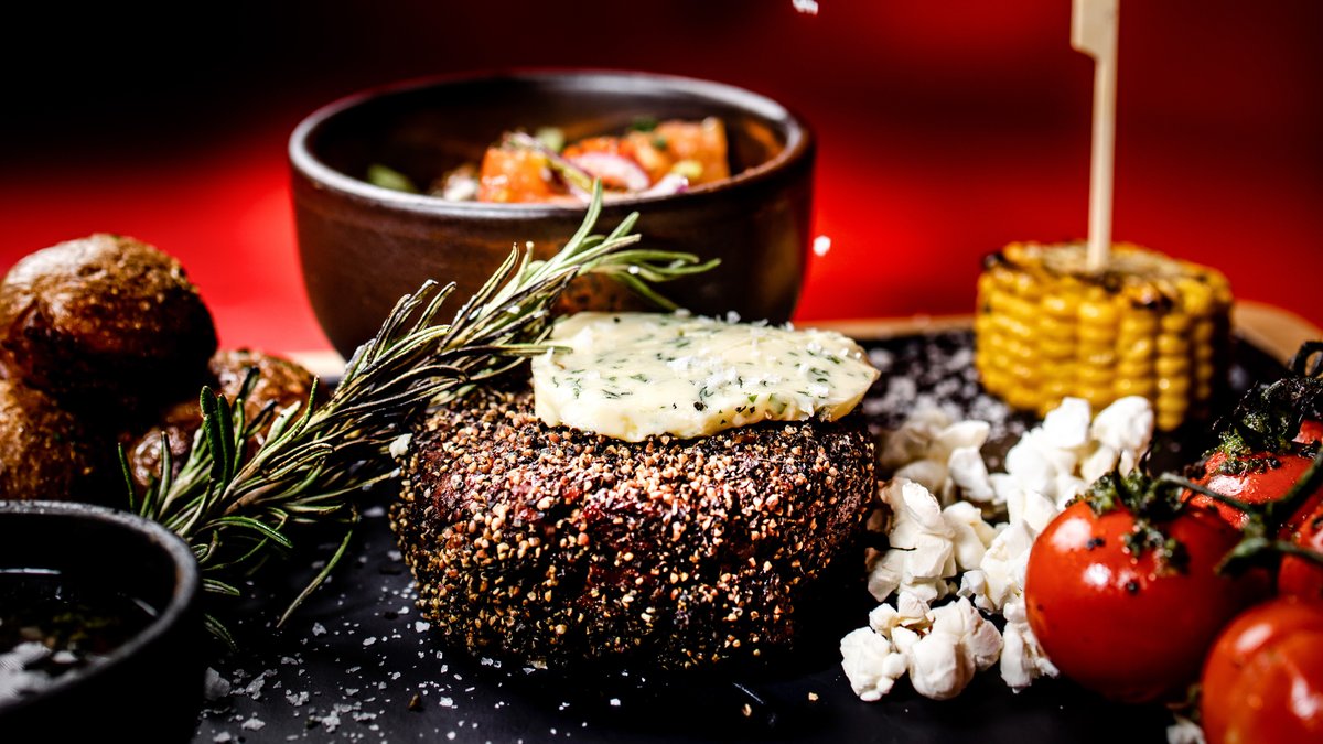 Dvigubasubrendęs jautis su aistringa apskrudinta šonine