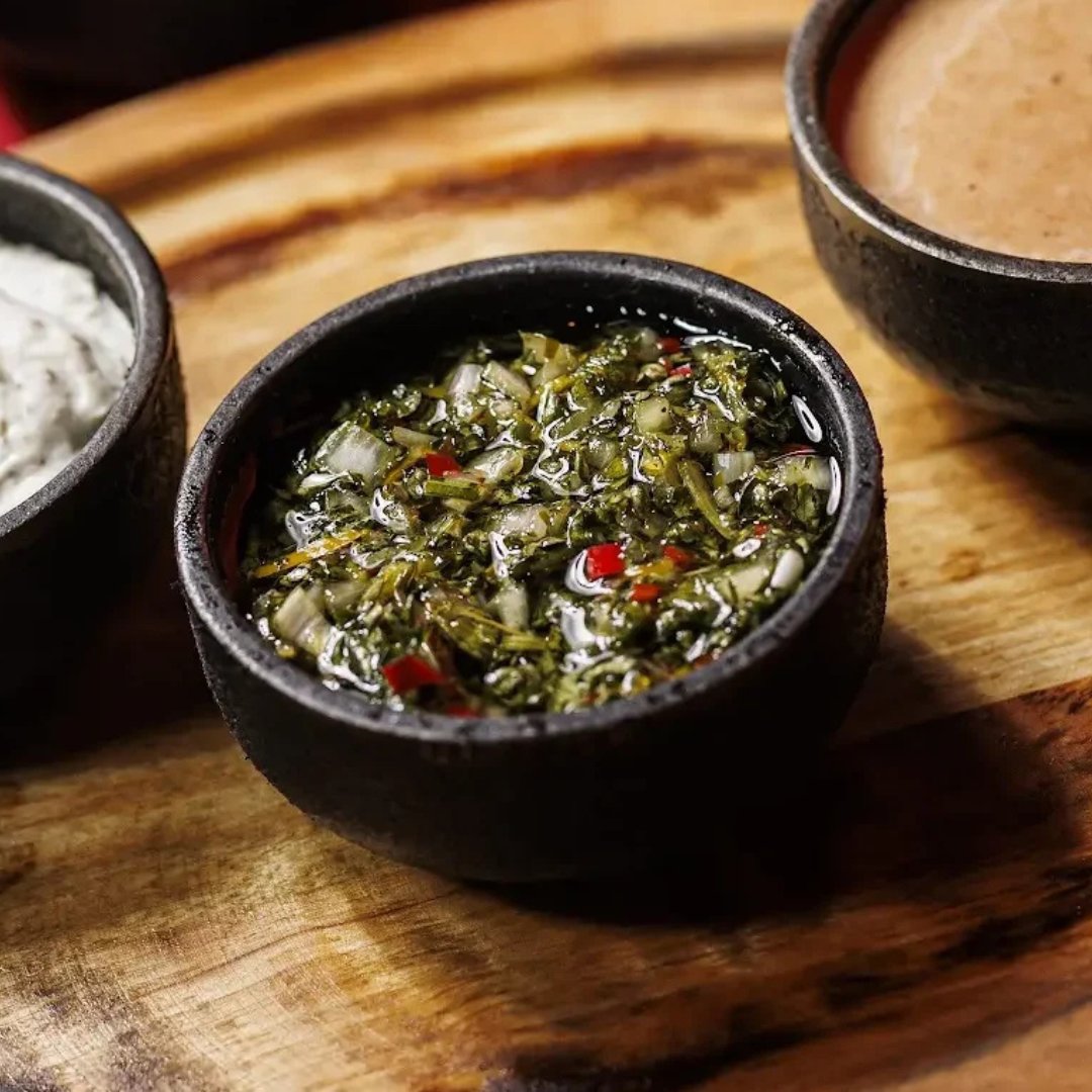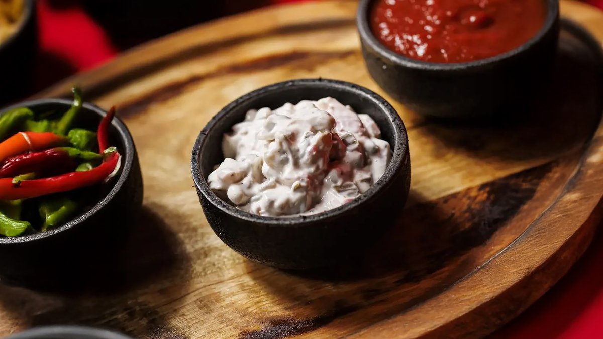 kapota jautienos išpjova, kaparėliai, šalotai, kornišonai, žolelės, laiškinio česnako padažas