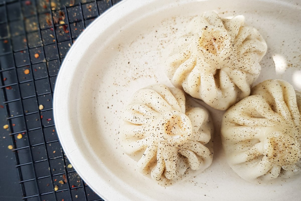 Kepti keptuvėje, traškūs chinkali su mėsa. Pageidaujant patiekiami su Kartveliškais juodaisiais/raudonaisiais pipirais, 3vnt/520g