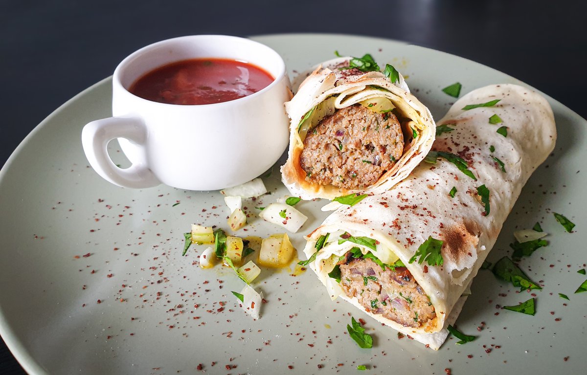 Malta mėsa, kepta ant žarijų. Patiekiamas su mūsų gamybos lavašu, svogūnais, petražolėmis, kalendromis, Kartveliškais prieskoniais ir Satsebeli padažu