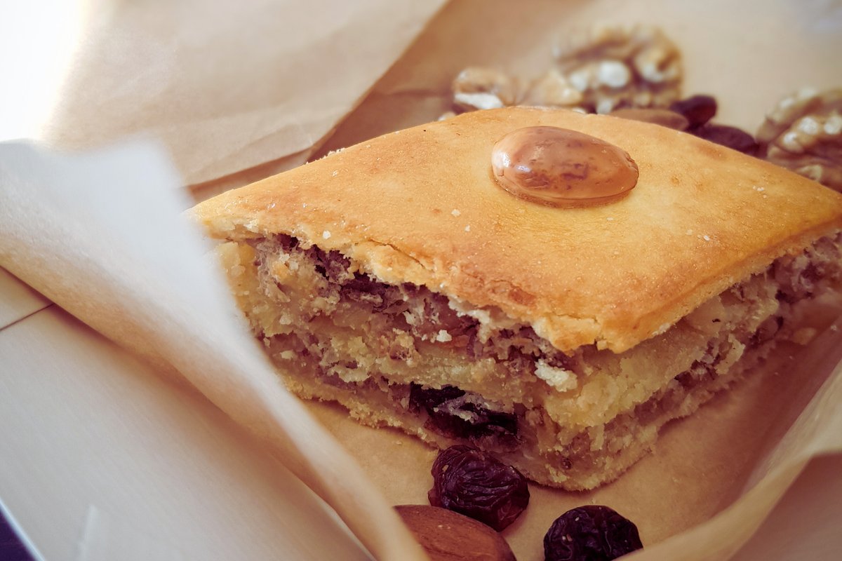 Desertas su graikiniais riešutais, razinomis ir migdolais