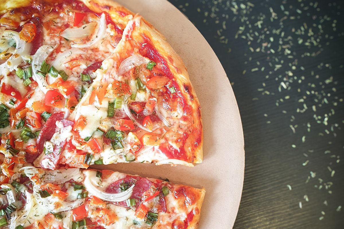 Saliami, svogūnai, pomidorai/saldžiosios paprikos, sūris, česnakinis/Satsebeli padažas, Kartveliški prieskoniai, 27cm