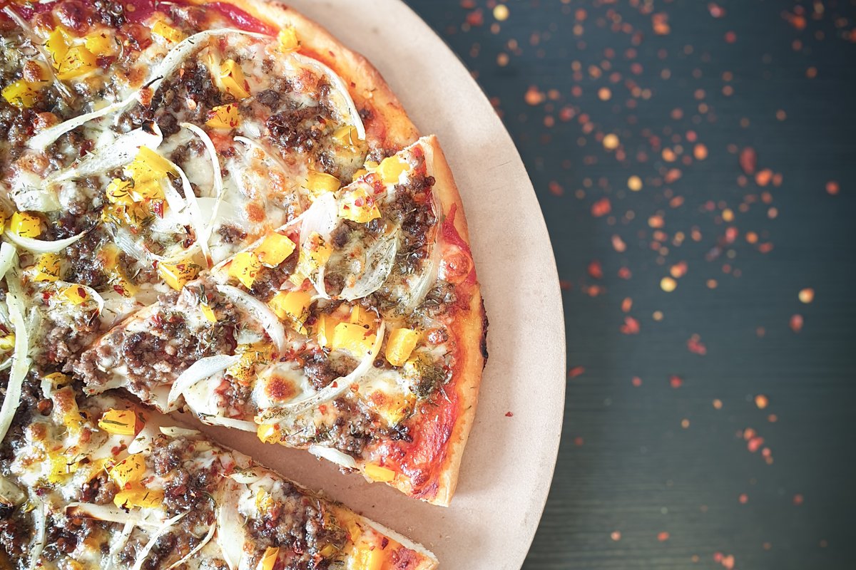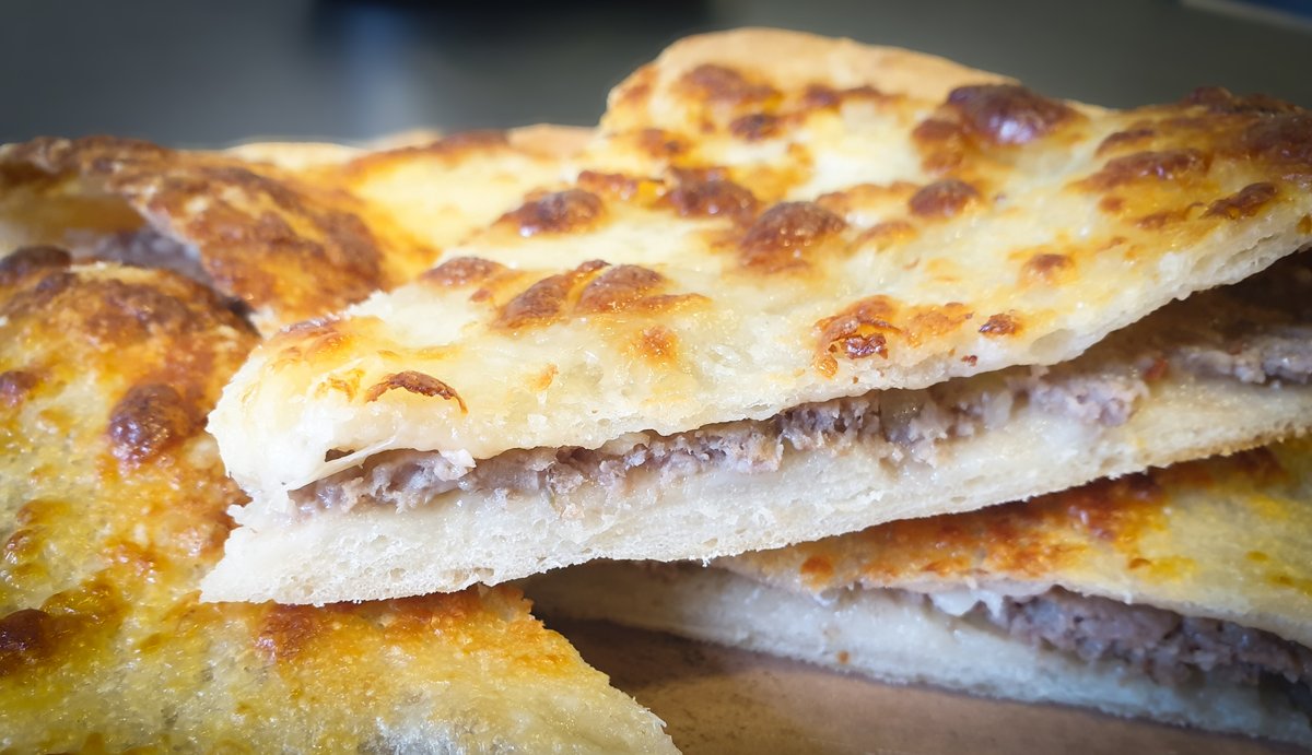 Jautienos/kiaulienos faršas, svogūnai, pomidorai/saldžiosios paprikos, sūris, česnakinis/Satsebeli padažas, Kartveliški prieskoniai, 27cm