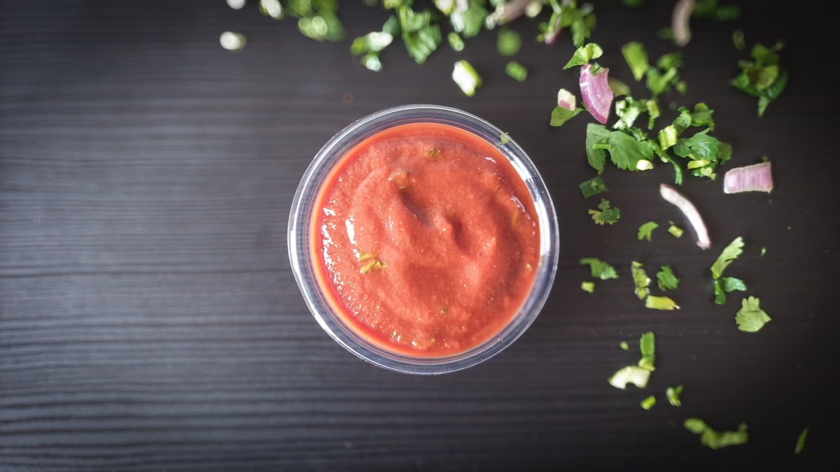 Mūsų gamybos pomidorų padažas. Su svogūnais, kalendromis ir petražolėmis, neaštrus, 50g