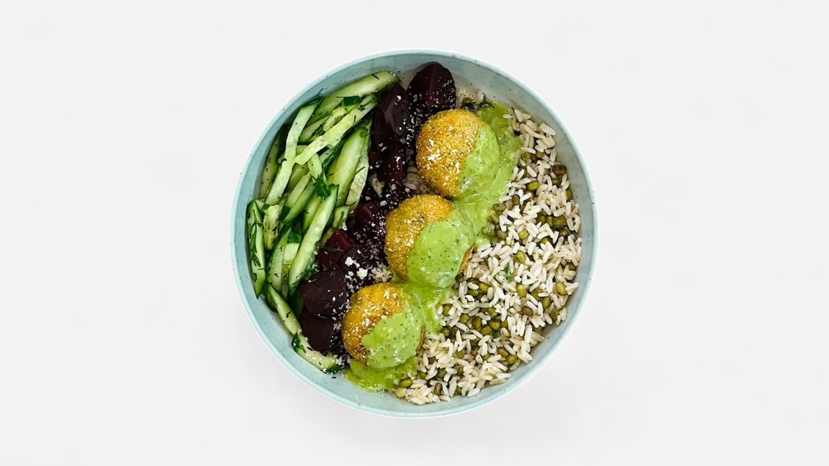 Gentile salotų lapai, kininis kopūstas, plėšyta jautiena, kepinti avinžirniai, marinuota morka, bolivinė balanda, agurkas, šiltos kruopos, salotų dressingas, brandintas kietasis sūris