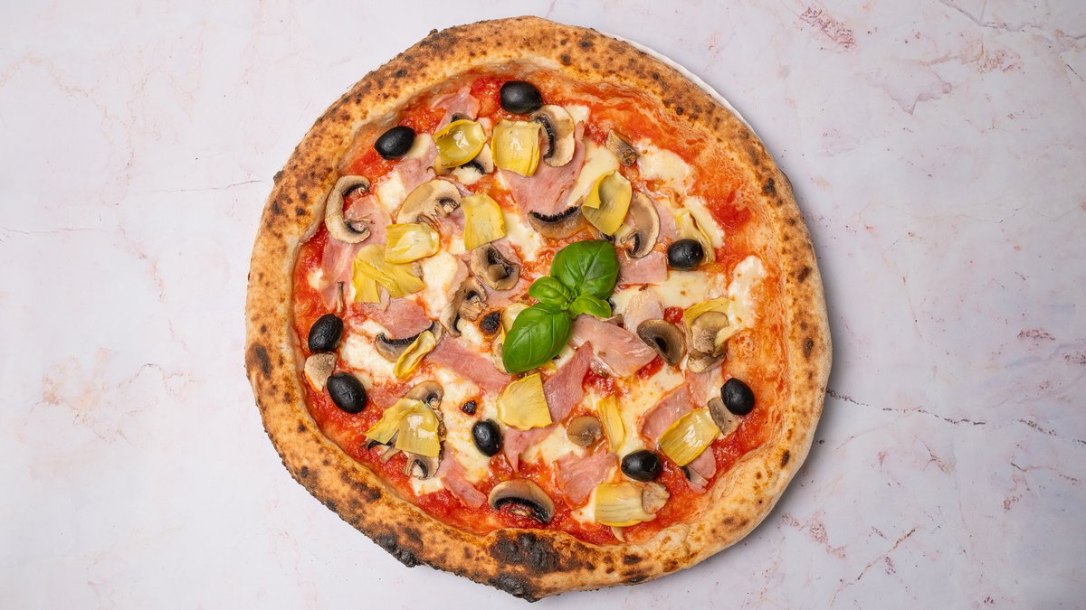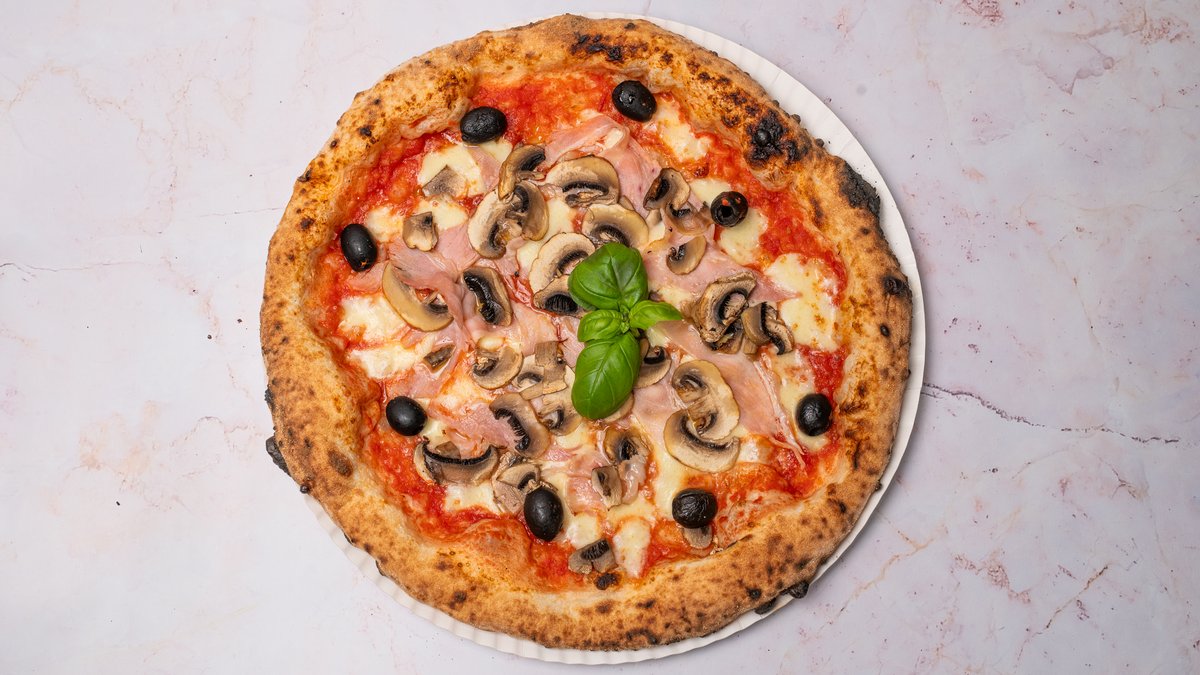 Prosciuto e fungi and olives 32 cm