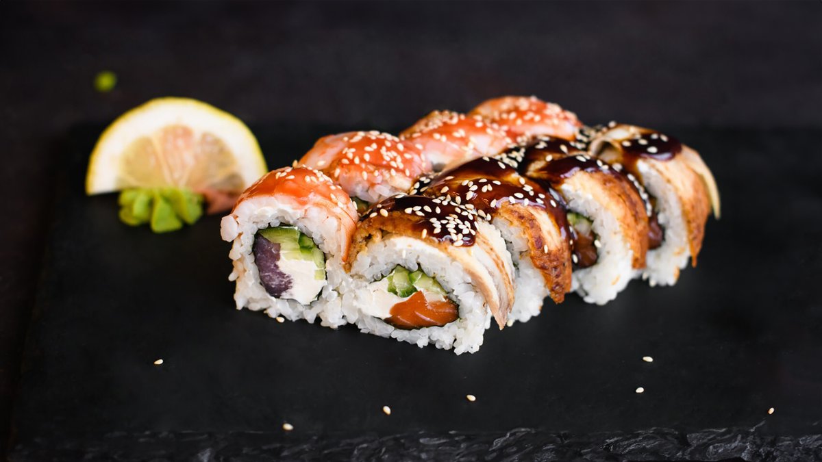 8 vnt. Dragon Maki (tempuros tešloje keptos krevetės, ungurys, avokadas, Philadelphia sūris, Teriyaki padažas, sezamo sėklos, sūrio padažas), 1 vnt. Sake Nigiri (lašiša), 1 vnt. Ebi Nigiri (krevetė), 1 vnt. Maguro Nigiri (tunas), 1 vnt. Unagi Nigiri (ungurys, Teriyaki padažas, sezamo sėklos)