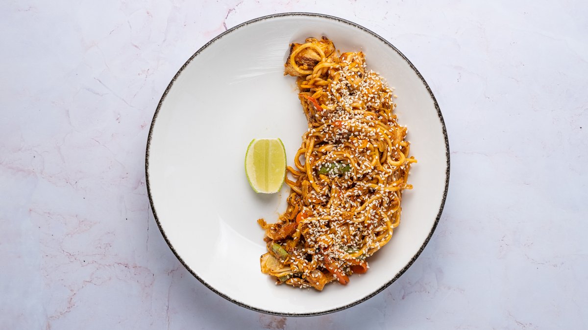 Azijietiški makaronai su teriyaki padažu