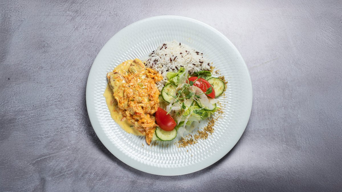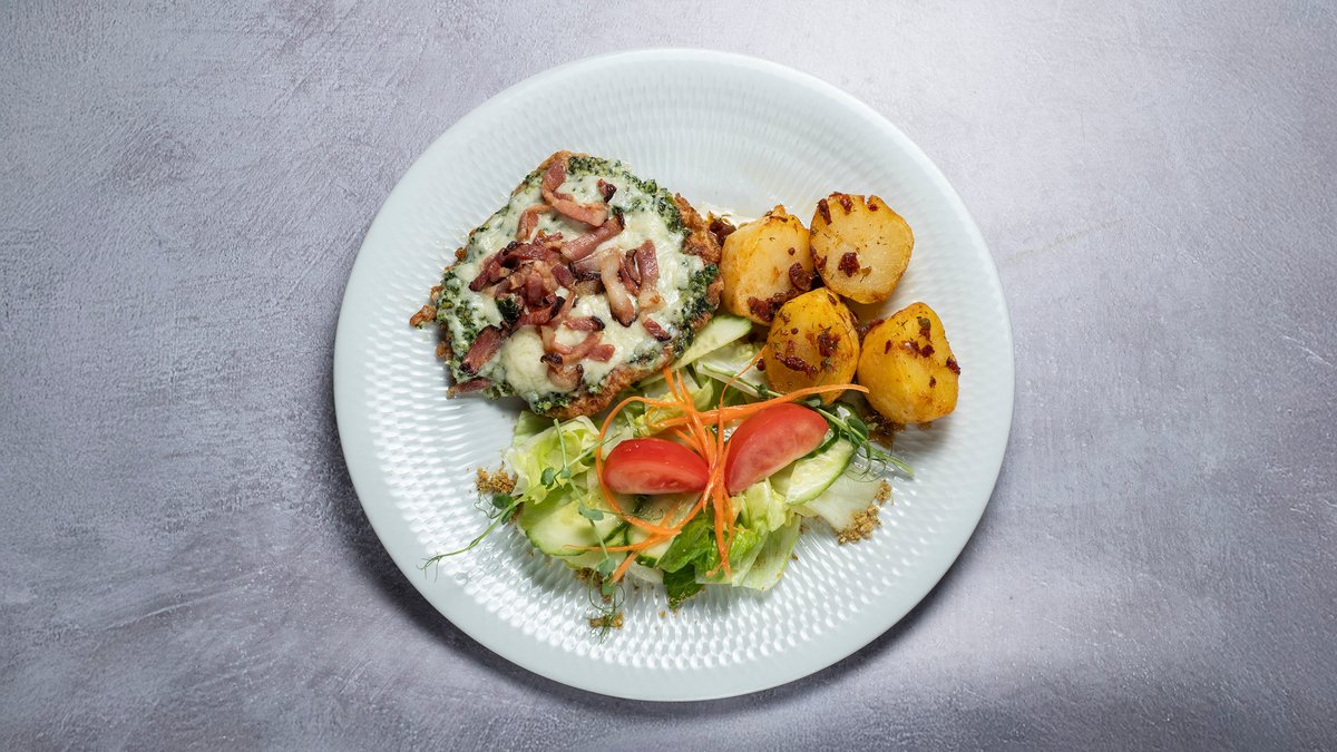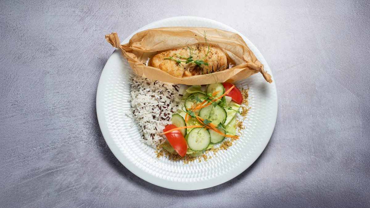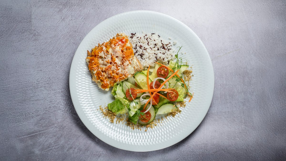 Menkės filė kepsnys užkeptas daržovėmis ir sūriu