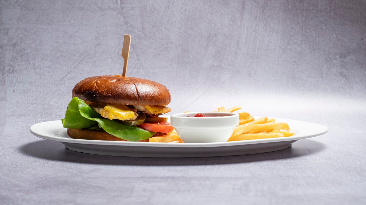 Su jautienos-kiaulienos kotletuku ir fri bulvytėmis