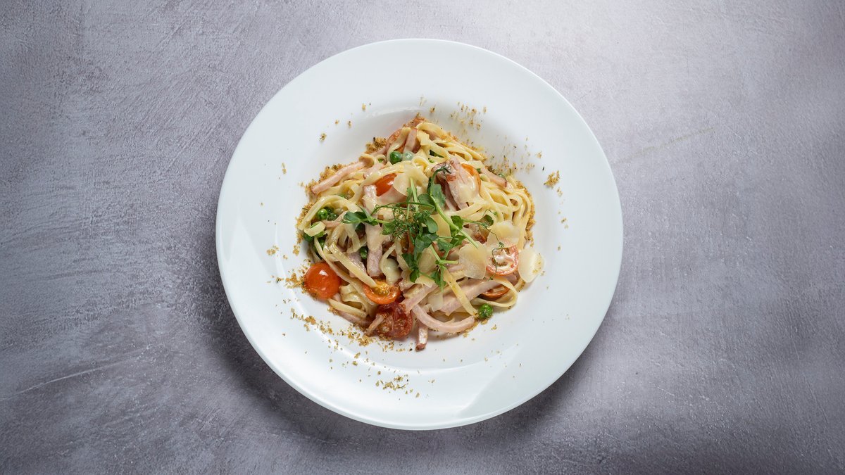 Makaronai su kumpiu, grietinėlės ir sūrio padaže
