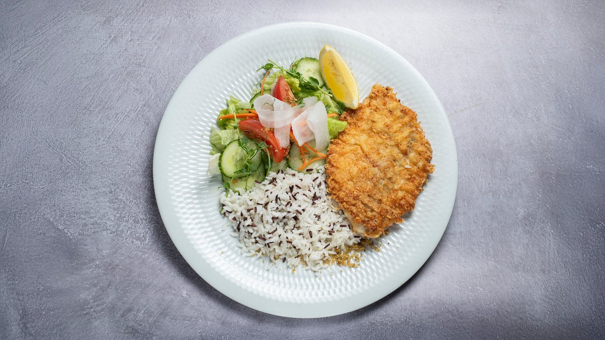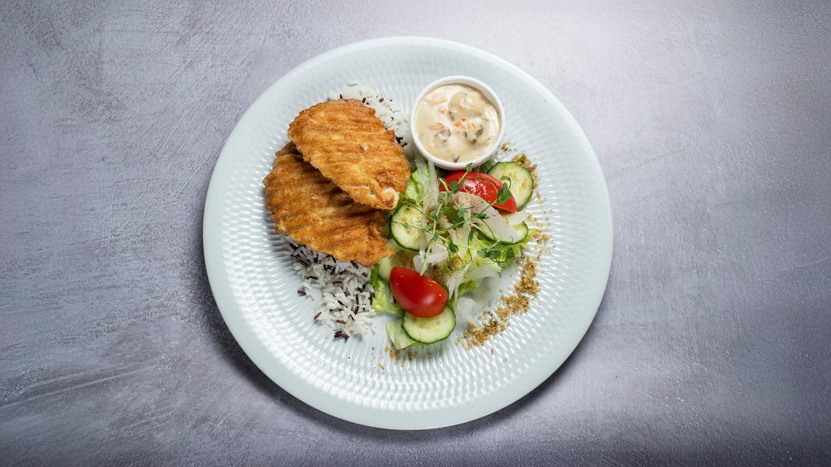 Su vištienos file kepsniuku ir fri bulvytėmis