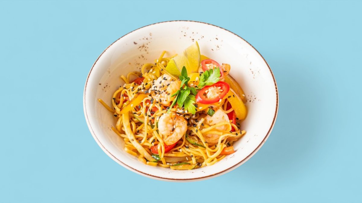 Makaronai su krevetėmis ir daržovėmis
