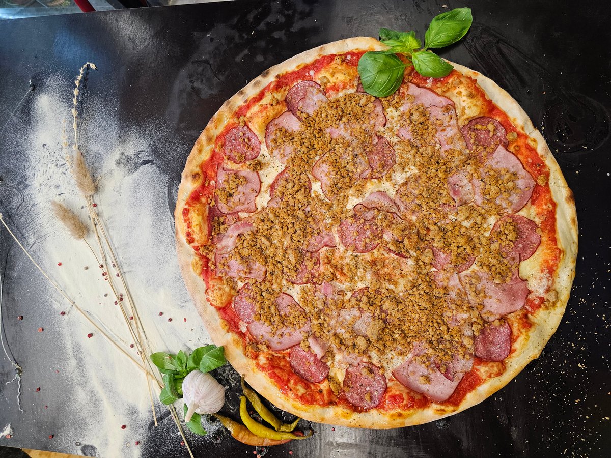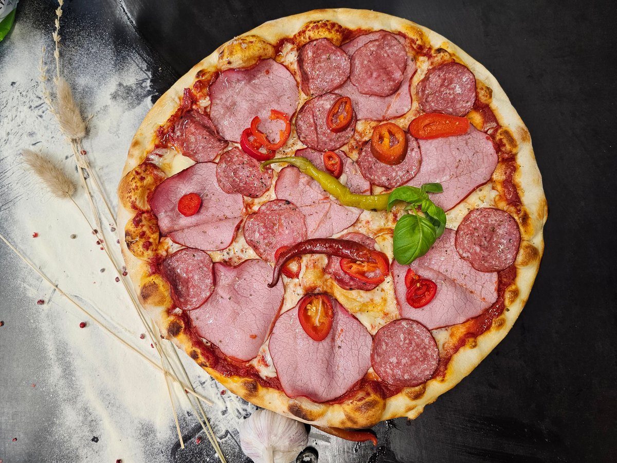 Sūris, saliami, kiaulienos kumpis, jalapenas, peperoni pipirai