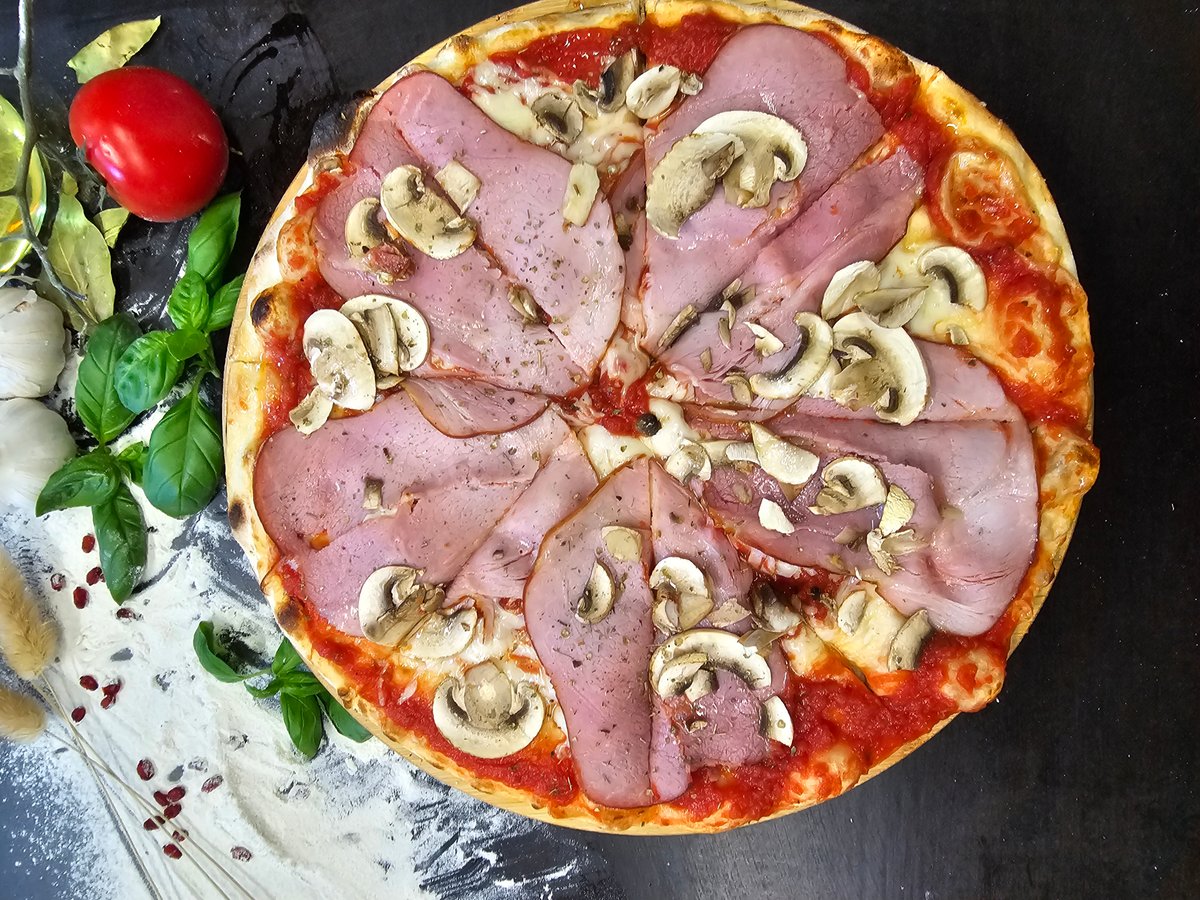 Sūris, kumpis, pievagrybiai, svogūnai
