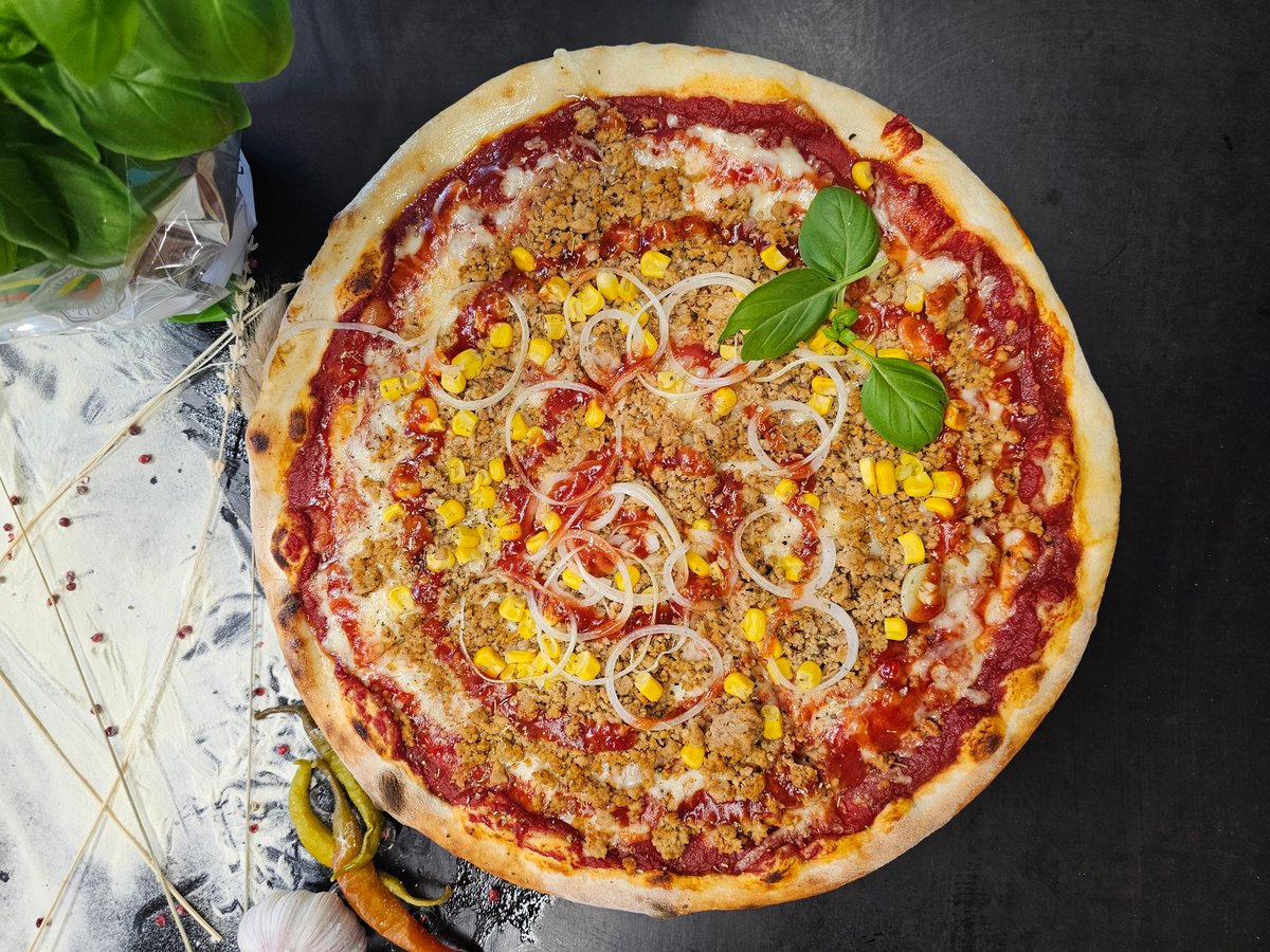 Sūris, kiaulienos faršas, svogūnai, kukurūzai, salsa padažas
