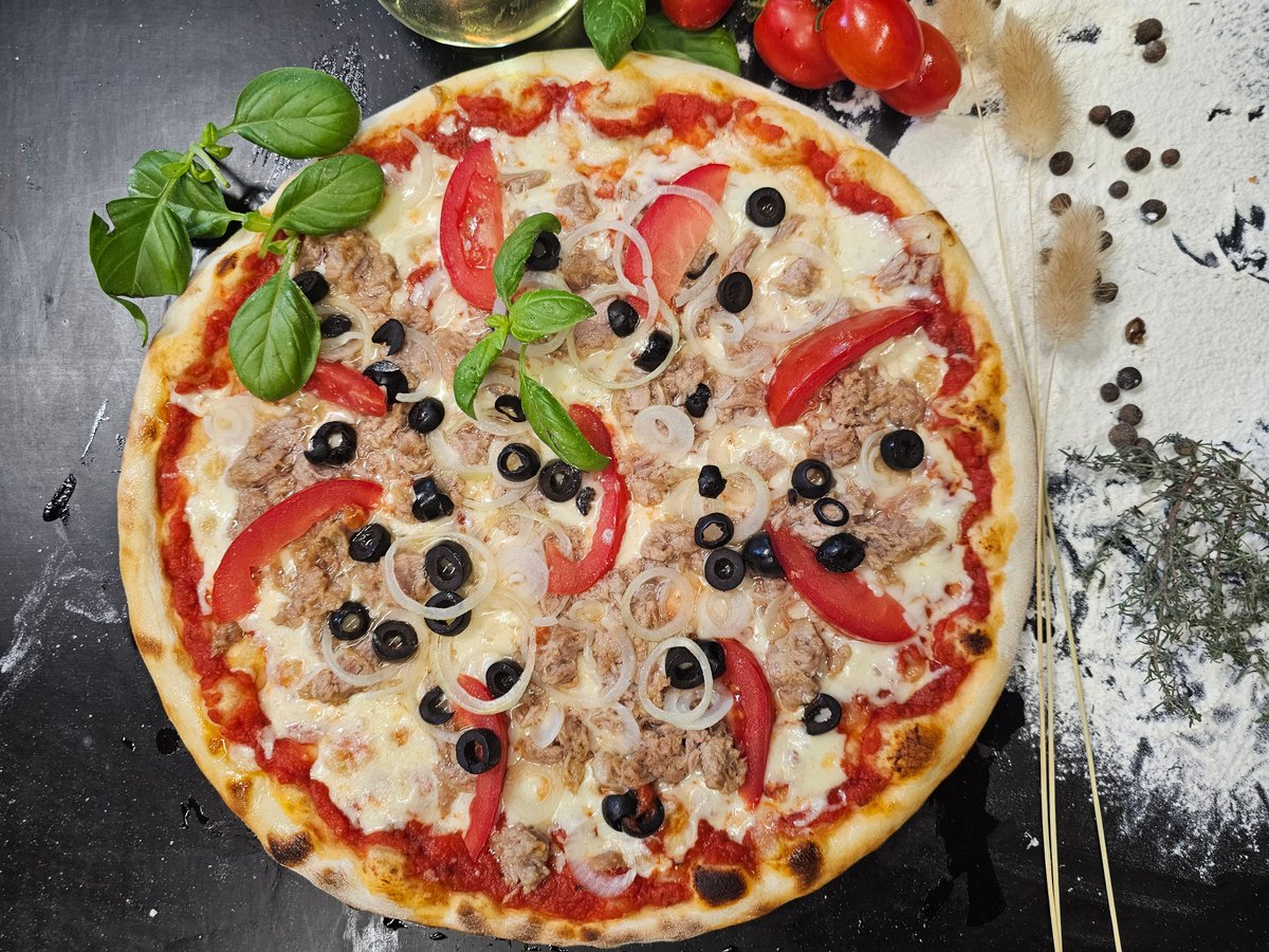 Sūris, pomidorai, tunas, alyvuogės, svogūnai