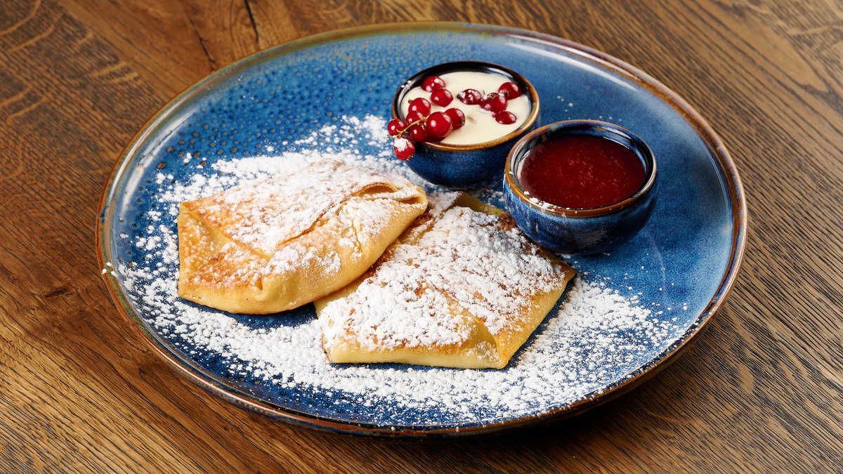 Virti koldūnai Patiekiami arba su grietine arba su pievagrybių padažu (vienas padažas pasirinktinai)