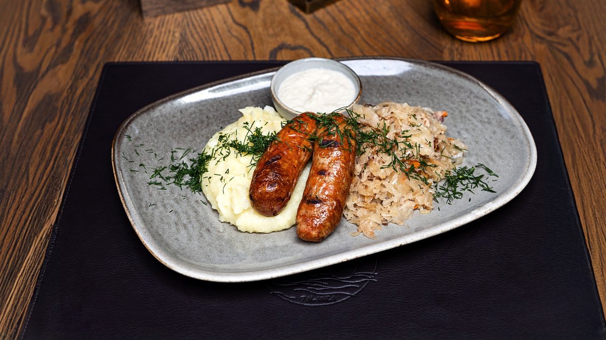 Patiekiamos su troškintais-raugintais kopūstais, bulvių koše ir krienų padažu