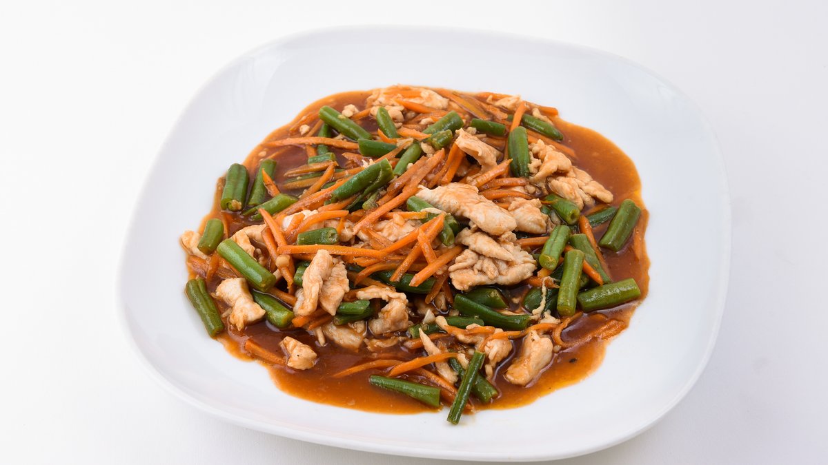 Vištiena, morkos, šparaginės pupelės