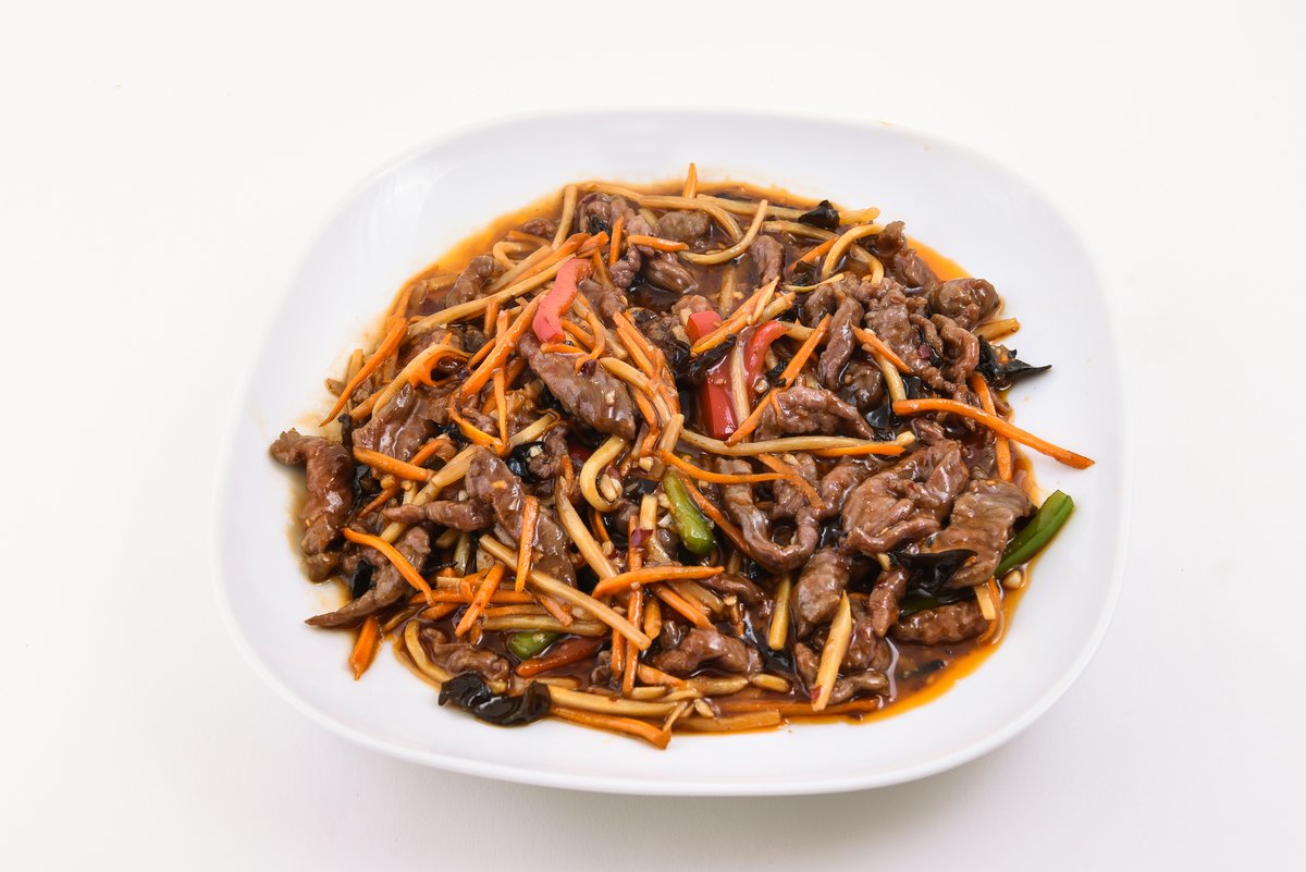 Jautiena, pekininiai kopūstai, agurkai, morkos, sojų pupelių daigai, sojų makaronai, juodieji kiniški grybai