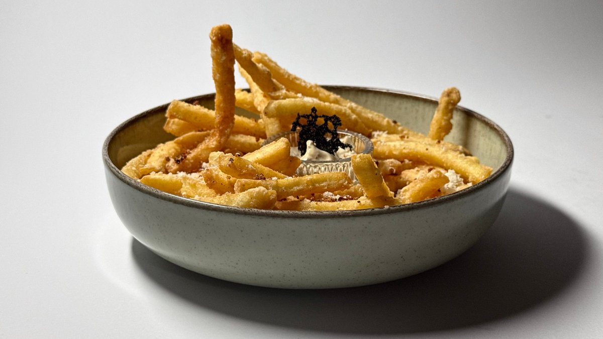 Traškios bulvių lazdelės su trumų aioli