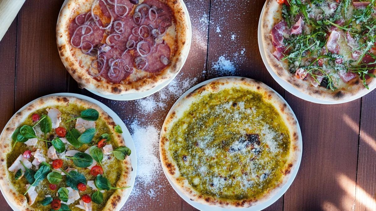 Pomidorų padažas, mozzarella sūris, pepperoni dešra, šoninė, nduja (aštri dešra)