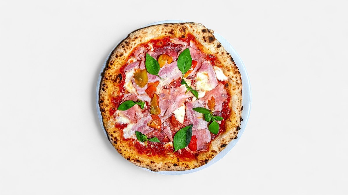(pomidorai savo sultyse, sūris mozzarella, alyvuogių aliejus, švž. bazilikai, virtas kumpis, dešra Chorizo, š/r šoninė, kepta paprika, kietasis sūris)