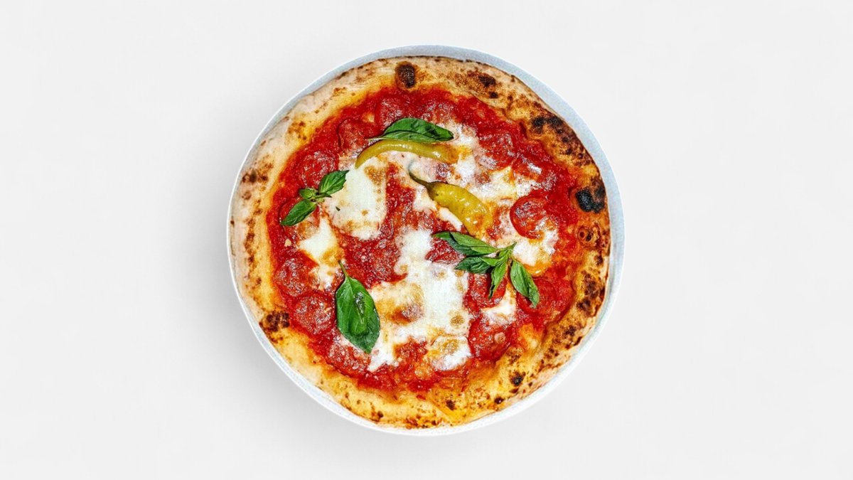 (pomidorai savo sultyse, sūris mozzarella, alyvuogių aliejus, švž. bazilikai, dešra peperoni, kons. jalapenai)
