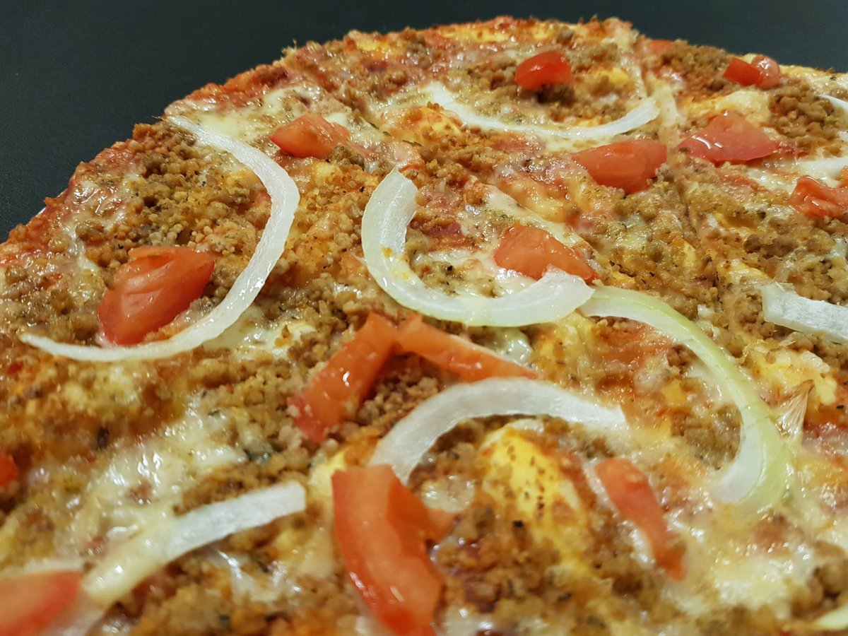 Pomidorų padažas, fermentinis sūris, kiaulienos kumpis, malta kiauliena, svogūnai, pikantiškas padažas