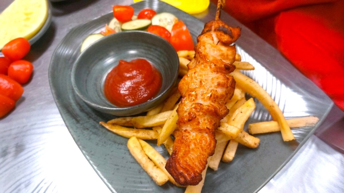 Vištienos iešmelis su bulvėmis fri ir daržovėmis