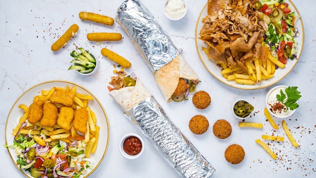 Platus kebabų ir kitų šviežių patiekalų pasirinkimas kiekvieno skoniui