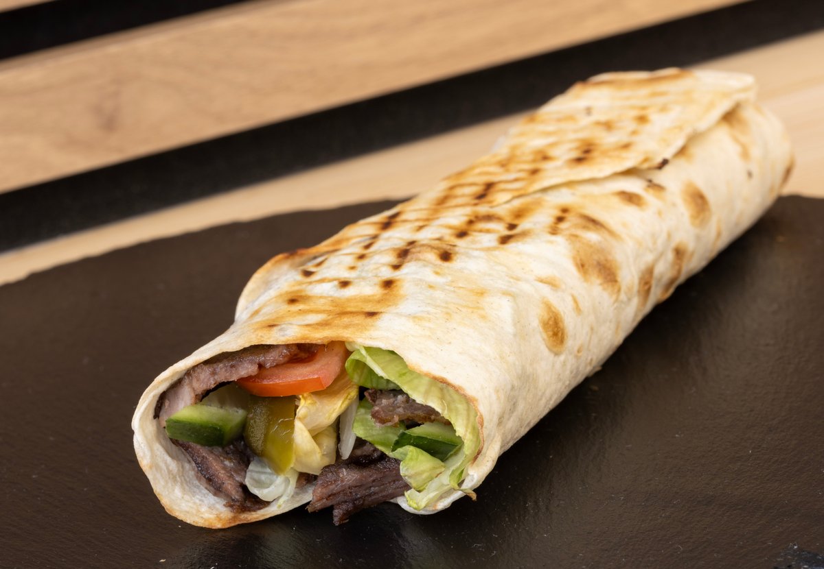 Kebabas lėkštėje su bulvytėmis ir daržovėmis