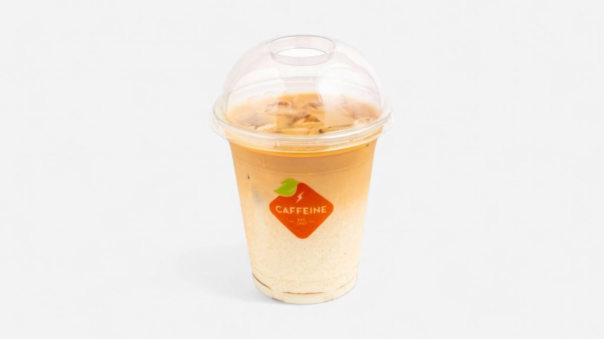 Egzotiškas šaltos kavos gėrimas su espreso kava, pienu, saldžia karamele ir lengvu cinamoniniu aštrumu