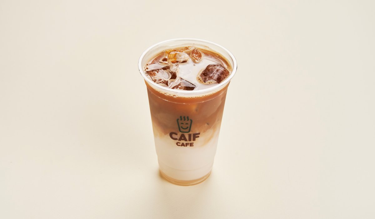 Švelnus espresso gėrimas su kaitintu pienu, pasaldintas tirštu karamelės padažu