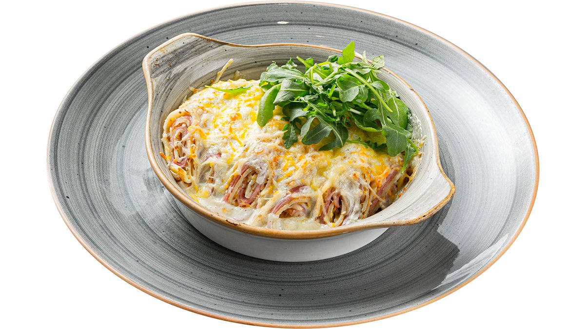 Apkepti lietiniai: virtas kiaulienos kumpis, fermentinis sūris, čederio sūris, grietinėle, persilado prieskoniai, rukola.