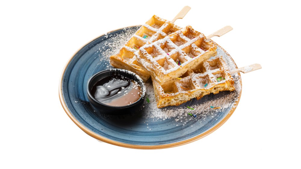 Vafliai – mažųjų kūrybos džiaugsmas! Patiekiami su šokoladu, karamele, spalvotais pabarstukais.
