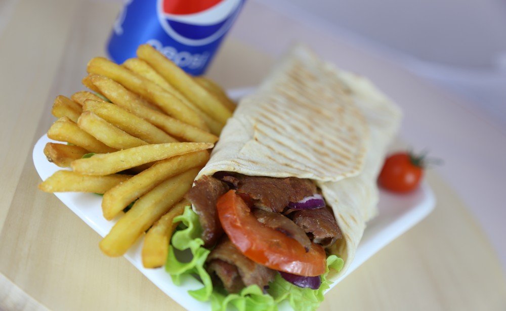Didelis kebabas lavaše + bulvytės + gėrimas