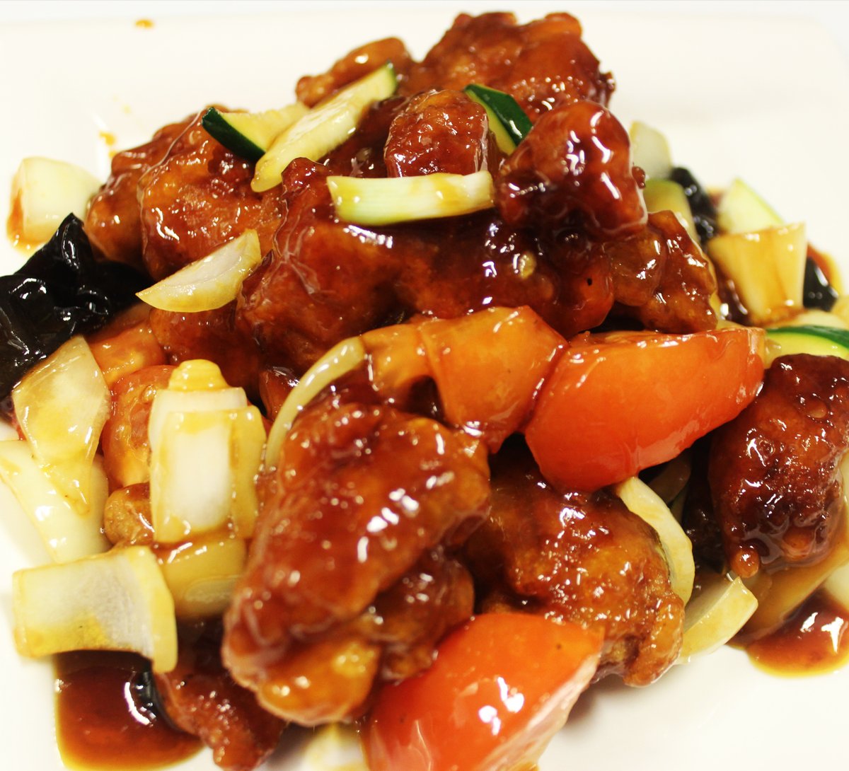 E7 Traškanti kiauliena su daržovėmis saldžiarūgščiai