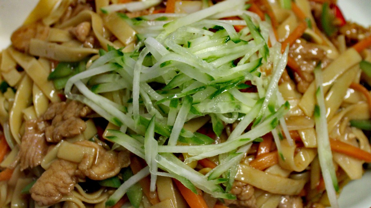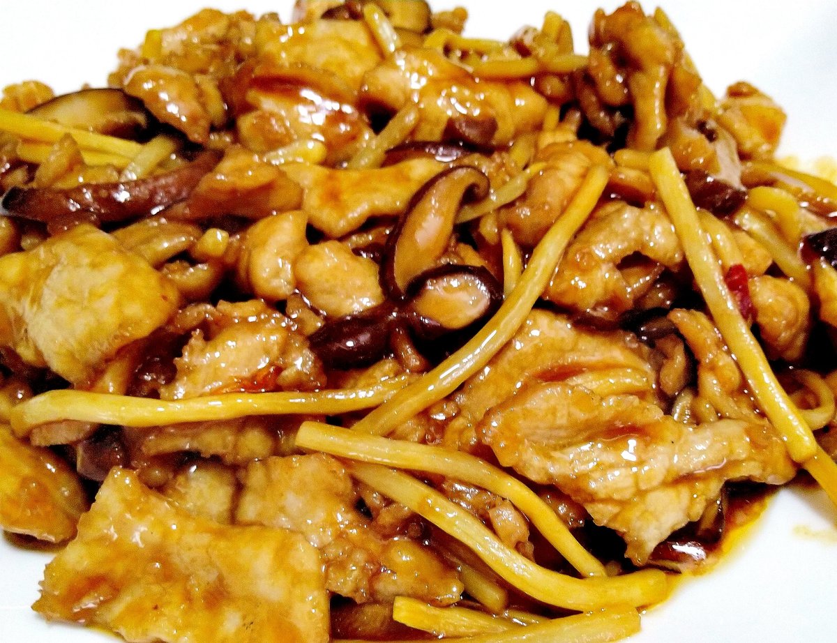 Nr19. Kiauliena su xiang gu grybais ir cukinijomis sojos padaže
